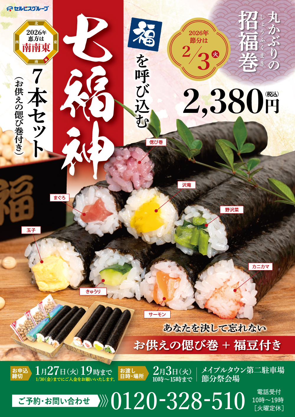 福を呼び込む節分の定番、七福神になぞらえた「七福神 巻寿司」をご用意しました。
