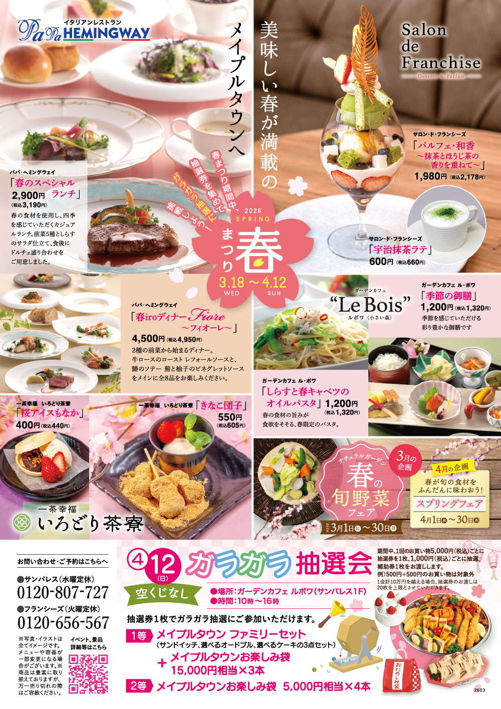 春限定グルメと楽しいイベントで、メイプルタウンの春を満喫しませんか。